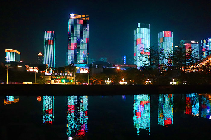 一般來說當(dāng)我們提到照明燈光秀的時(shí)候,一種是類似一江兩岸或一河兩岸等這樣的建筑媒體立面燈光秀,也有一海一岸等。在城市的尺度下,通過照明設(shè)計(jì)把建筑立面、街道、公共空間作為設(shè)計(jì)的載體,以立面、燈光投影、LED燈的信達(dá)智控進(jìn)行一系列的照明控制的園林景觀燈光秀。第二種是依據(jù)園林景觀為載體配合當(dāng)?shù)仫L(fēng)土人情文化進(jìn)行的燈光秀的演出,可以結(jié)合噴泉、水景、激光、3D投影、音樂等。