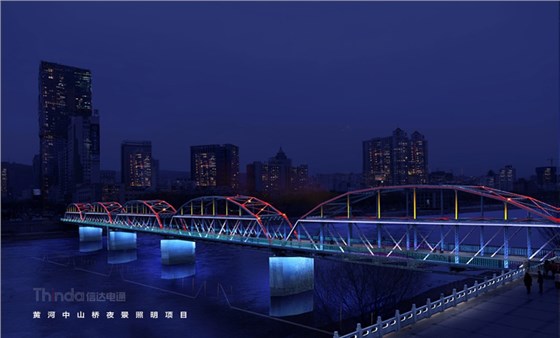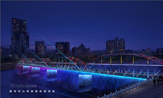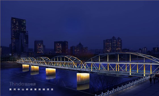 蘭州中山橋歷史悠久,建于清光緒年間,素有“天下黃河第一橋”之稱,全長(zhǎng)234米,寬7.5米。信達(dá)電通邀請(qǐng)橋梁建筑設(shè)計(jì)師和信達(dá)照明設(shè)計(jì)師聯(lián)合主筆,暖黃光和藍(lán)光為主色調(diào),形成和諧夜景氛圍,既滿足夜間基礎(chǔ)照明照度,又通過(guò)燈光渲染將大橋體量在夜間凸顯,重拾大橋風(fēng)度。