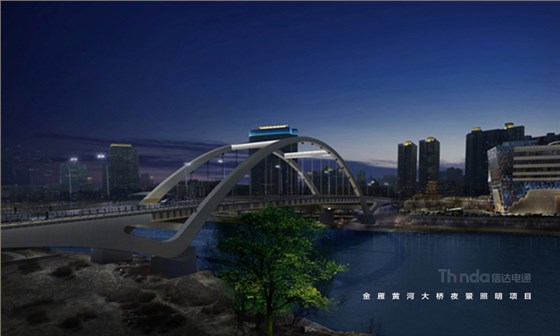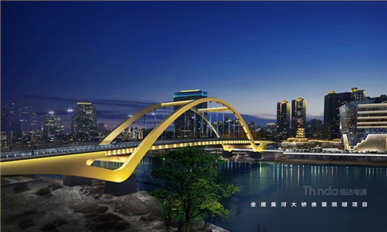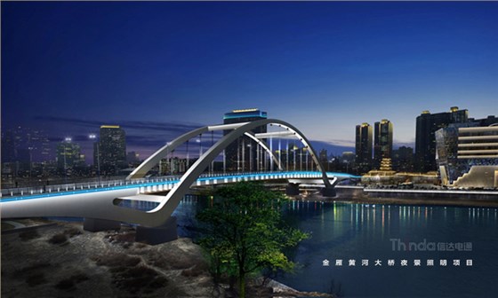 蘭州金雁黃河大橋全長六百多米,形似飄帶,信達電通在設計中選用黃色或淡藍色的簡約光色進行勾勒,使橋體的線條感在夜間更好的展示,在搭建智控時,信達電通根據設計效果選用穩定、單一的控制。