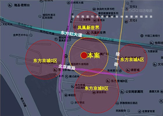 西亞和美商業廣場地處于河南省信陽市,位于東方紅大道、南臨北京南路、東臨統一街,周邊有鳳凰新世界、東方京城、軸線之廊,位置優越,交通便利。這里信陽人民平時生活娛樂與購物餐飲的地方,也是IGA中國區優秀零售商。目前商業廣場夜景照明已經跟不上整體的商業需求,急需進行照明設計施工改造升級,為此信陽西亞和美業主聯系到信達科技,雙方根據本案開展照明設計施工合作。
